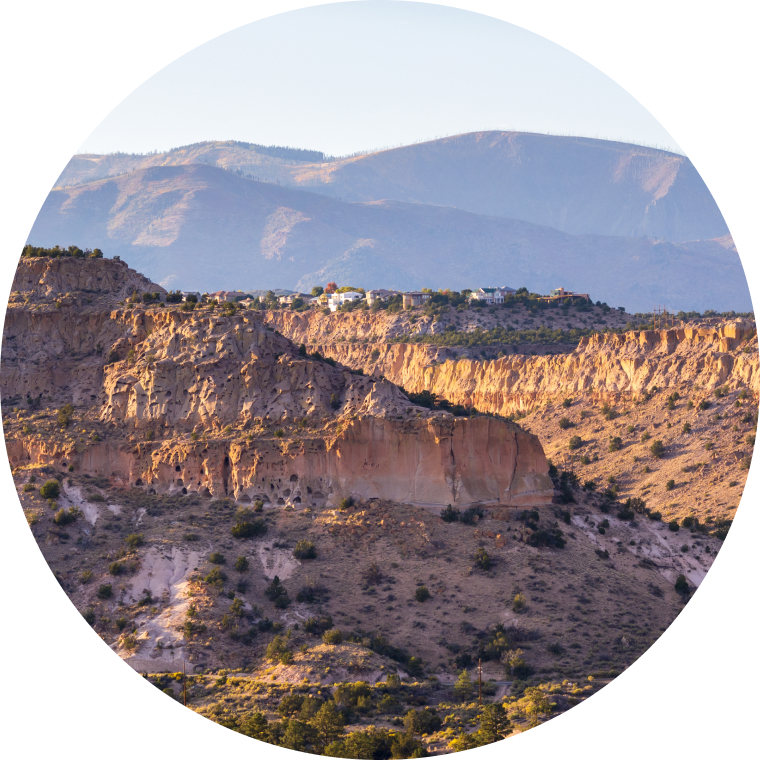 Atop a mesa, Los Alamos borders three national parks and offers spectacular panoramic views of the surrounding mountains, desert and canyons. Our climate offers cool summer evenings and moderate winter days to enjoy the 200 miles of trails, camping, skiing, golf courses and ice skating. And whether you compete or spectate, Los Alamos hosts annual mountain and road bike races, marathons, trail runs and triathlons. Here, families find safe neighborhoods, highly rated schools and almost daily concerts, events and festivals. History buffs can visit ancient Pueblo villages and learn about the Los Alamos National Laboratory and its impact on World War II. Science is central, creating a culture of innovation and attracting an international population. Santa Fe’s world-class museums, galleries, restaurants and opera are 30 minutes away.