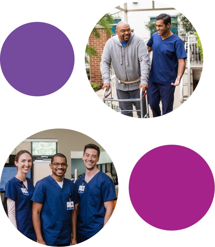 With opportunities from physical and occupational therapy to rehabilitation nursing, you’ll collaborate on interdisciplinary teams to make a difference for patients with a diverse range of injuries and illnesses.